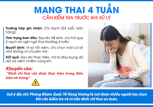 Nếu đang gặp vấn đề về mang thai ngoài ý muốn, chị em có thể đến Phòng Khám Đa Khoa Quốc Tế Hùng Vương để được bác sĩ kiểm tra và tư vấn phương án xử lý phù hợp, đảm bảo an toàn cho sức khỏe sinh sản.