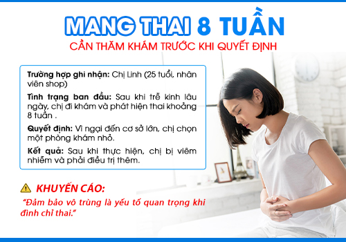 Mang thai ngoài ý muốn khi thai đã được khoảng 8 tuần khiến nhiều chị em băn khoăn không biết nên xử lý thế nào để đảm bảo an toàn. Ở giai đoạn này, thai đã phát triển rõ ràng hơn so với những tuần đầu nên việc bỏ thai cần được thực hiện tại cơ sở y tế uy tín và theo đúng hướng dẫn của bác sĩ chuyên khoa. Bài viết dưới đây sẽ giúp bạn hiểu rõ các phương pháp phá thai 8 tuần, quy trình thực hiện cũng như chi phí tham khảo hiện nay.