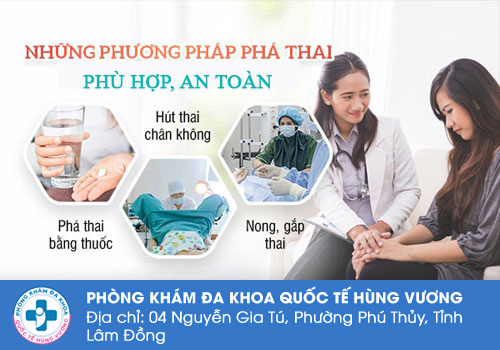 Chị em nào có nhu cầu đình chỉ thai có thể liên hệ đến Phòng Khám Đa Khoa Quốc Tế Hùng Vương. Tại đây là phòng khám chuyên khoa có hỗ trợ đình chỉ thai uy tín với đa dạng phương pháp an toàn nêu trên đảm bảo đủ điều kiện về mặt hiệu quả giúp thai phụ có thể an tâm.