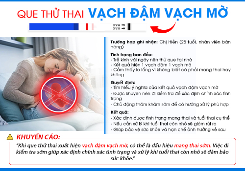 Tuy nhiên, nếu xuất hiện 1 vạch đậm (vạch kiểm soát) và 1 vạch mờ, điều này có thể cho thấy cơ thể đang có một lượng nhỏ hormone hCG được sản sinh khi phụ nữ mang thai.